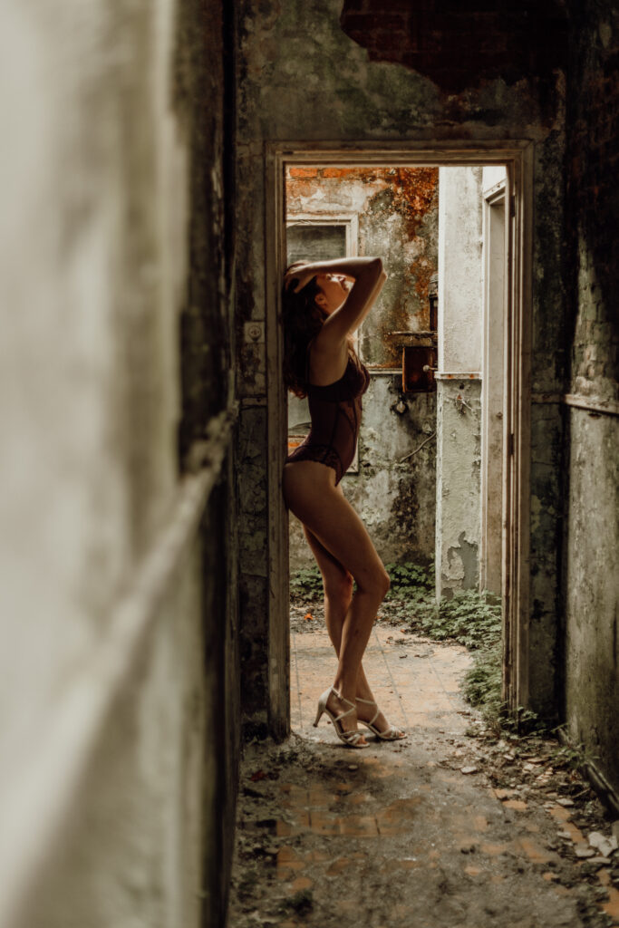 Op meerde plekken in het gebouw kwamen er leuke ideeën in mij op, ik heb vanaf het begin al gezegd dat ik niet wil dat het ordinair word maar juist vrouwelijk. De schoonheid van een lichaam, daar gaat het mij meer om. Ik vind het belangrijk dat je met een goed gevoel voor mijn lens staat en dat heb ik proberen over te brengen naar mijn dames.